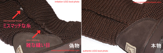 (偽UGG Australia®製品を生産している工場は複数あると思われるので、以下の点のすべては含んでいなくて、ものによって異なるかもしれません。) |