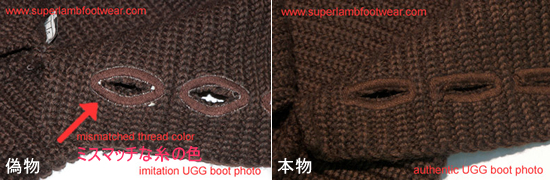 ウールは厚く充実しており、1個体の羊の皮から出来ていなければなりません。ニットブーツは、きれいな堅い織り目を持たなければなりません。イミテーション商品は、いかがわしい品質の材料から製造されています。