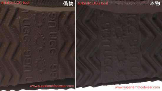 偽UGG Australia®製品を見破るもっとも簡単な方法はソールです。